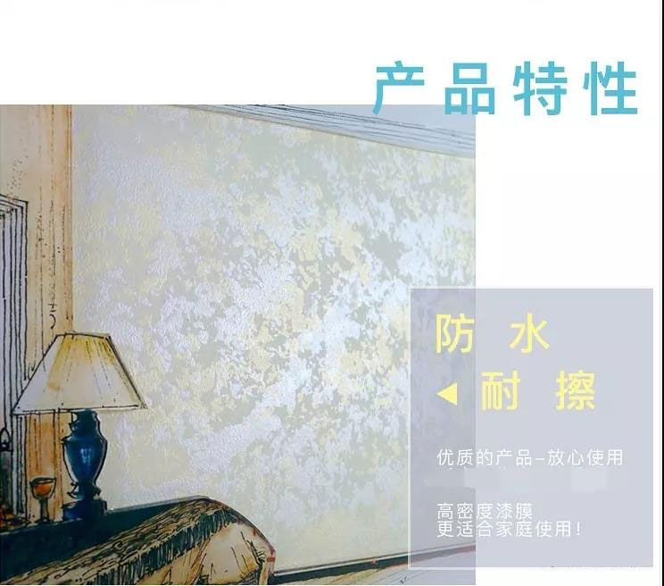 采用进口原料,纯手工打造,颜色效果多彩多样,完全满足个人对墙面立体艺术造型要求,造型和擦色工艺更凸显空间自然和谐,不是墙纸确酷似墙纸,无论是做全房还是单独背景墙,都可以自然展现、适合各种场所装修!