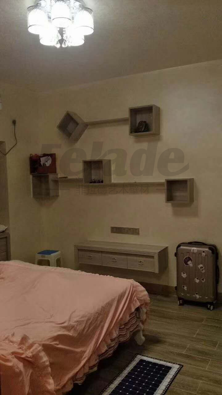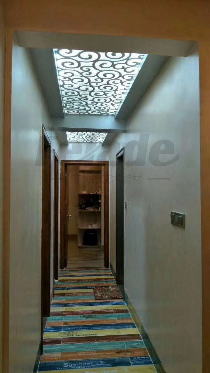 客厅顶部使用:菲拉德生态艺术壁材石纹彩 走廊使用:菲拉德生态艺术壁材塞巴斯汀 主卧使用:菲拉德生态艺术壁材暮光之城 儿童房使用:菲拉德生态艺术壁材皇家丝印